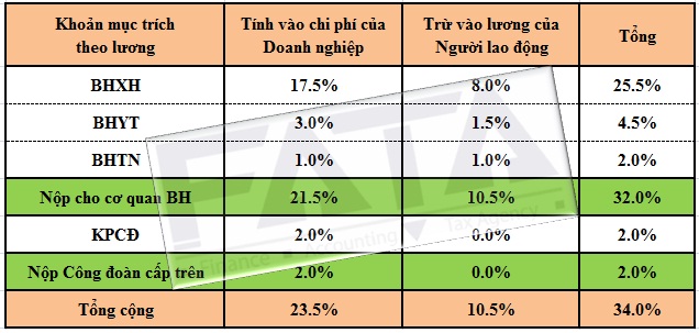Theo đó, tỷ lệ các khoản trích theo lương như: BHXH, BHYT, BHTN, KPCĐ áp dụng từ ngày 01/06/2017 như sau: